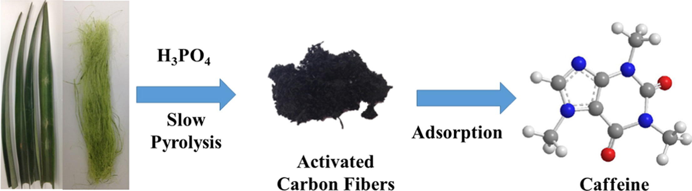 Adsorption of caffeine on mesoporous activated carbon fibers prepared from pineapple plant leaves