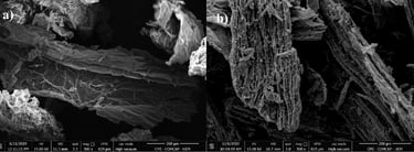 Este trabalho relata o uso da macrófita ( Eichornia crassipes ) como matéria-prima para a preparação de biochar ativado (ABC) por ativação física, utilizando CO₂ como agente ativador. O ABC foi aplicado na remoção de cafeína (CAF) de solução aquosa. A caracterização do ABC mostrou que ele apresenta características de micro e mesoporosidade com área superficial BET (S<sub> BET</sub> ) de 740 m² g⁻¹ e caráter básico da superfície com valor de pH PCZ de 8,44. O estudo de adsorção de CAF demonstrou que o pH inicial não é um fator que influencia diretamente a capacidade de adsorção, cujo q <sub> e</sub> é de 161,1 ± 10,56 mg g⁻¹ . O estudo cinético mostrou que o modelo de pseudo-segunda ordem descreve melhor o processo de adsorção. O estudo de equilíbrio de adsorção indicou que o modelo isotérmico de Redlich-Peterson se ajusta melhor e que o ABC apresenta alta capacidade máxima de adsorção em monocamada de CAF (Q <sub>máx</sub> = 117,8 mg L <sup>-1</sup> ). Os estudos termodinâmicos indicaram que o processo é espontâneo, endotérmico e governado por quimissorção.